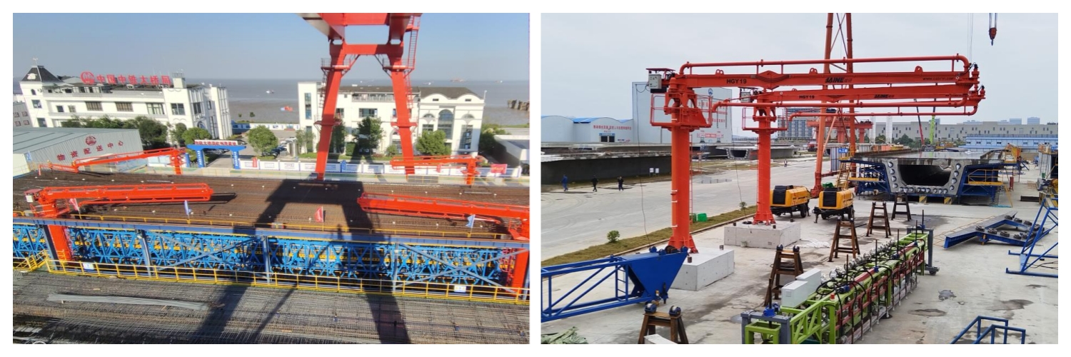 “建研”智能布料機已廣泛應(yīng)用于橋梁建設(shè)的多個關(guān)鍵環(huán)節(jié),包括錨碇、承臺、預(yù)制箱梁、橋面及橋塔等部位的混凝土澆筑。