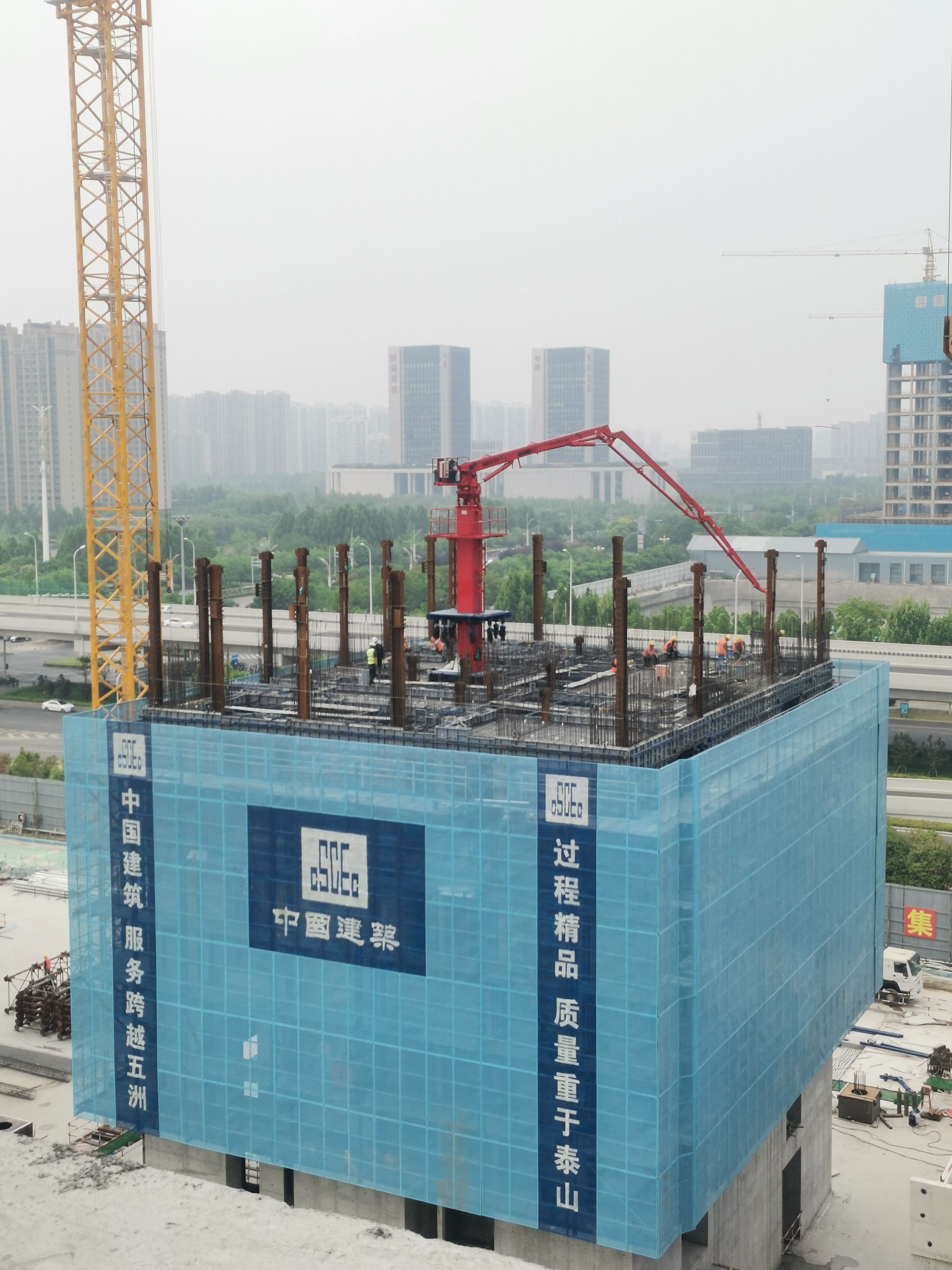 廊坊凱博建設機械科技有限公司生產的?JAINE建研?內爬式布料機(HGY17)經過用戶多方面的綜合比較和激烈競爭后,成功進駐濟寧京杭大數據產業園基礎設施項目。
