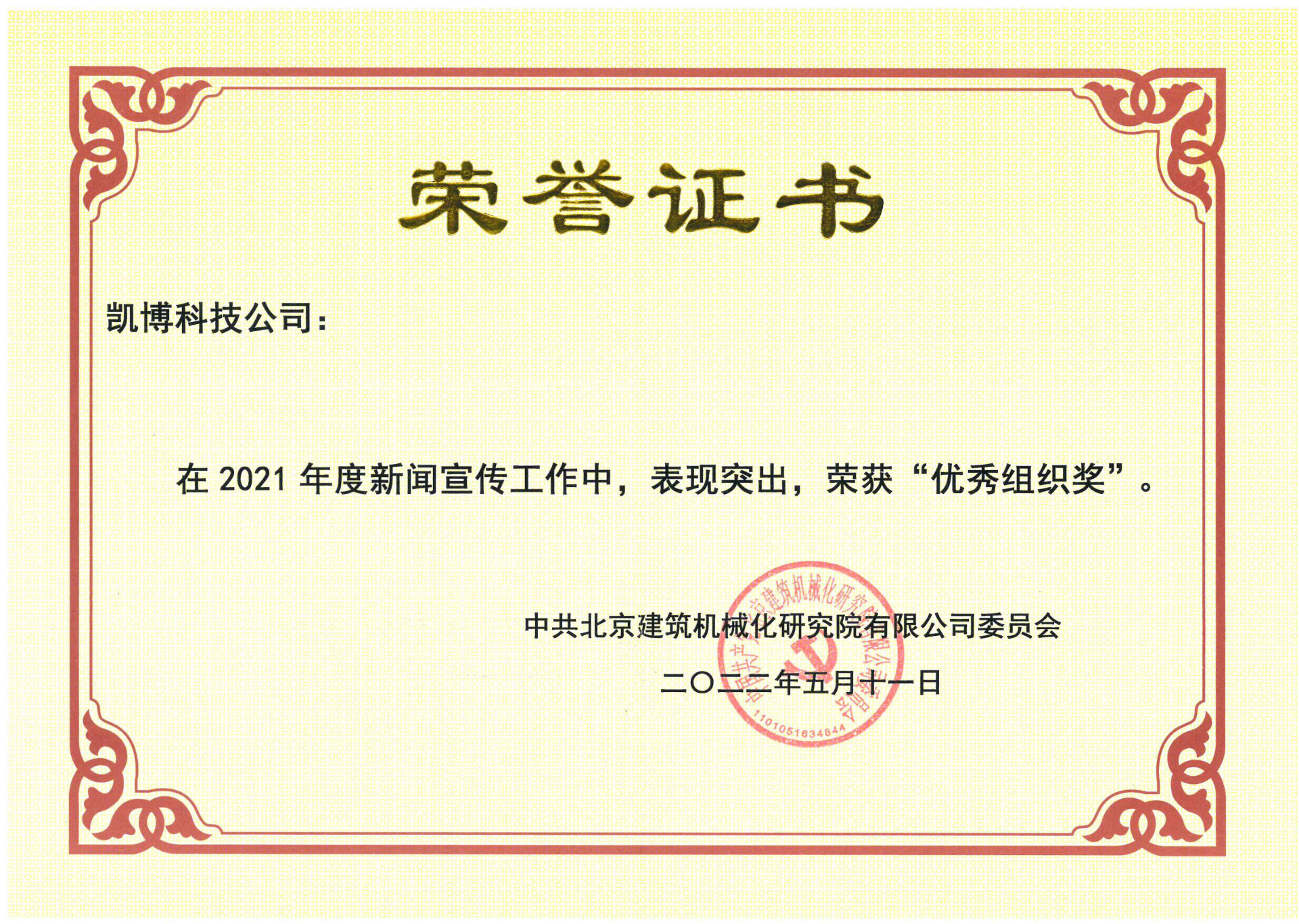 近日,廊坊凱博建設(shè)機械科技有限公司(以下簡稱“凱博科技”)榮獲北京建筑機械化研究院有限公司“新聞宣傳優(yōu)秀組織獎”。